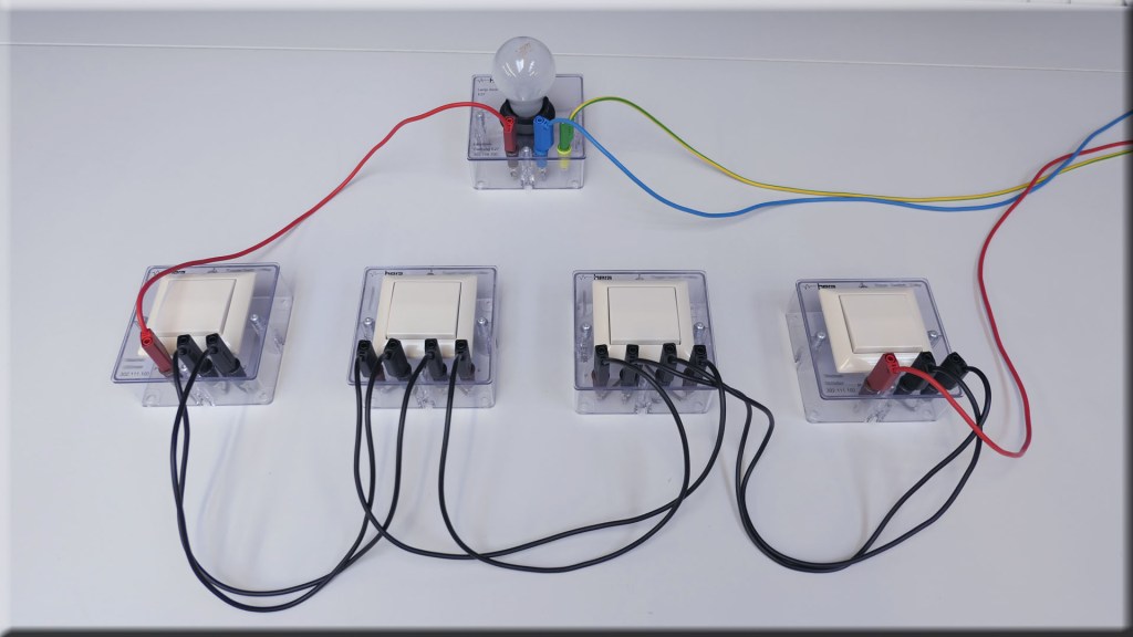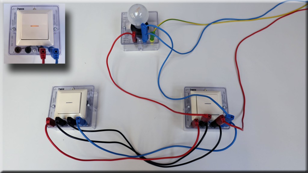 Lernprogramm Elektrotechnik: Ableseübungen analoges Messgerät, Strommessungen, Spannungsmessungen, Widerstandsmessungen, Kennlinie eines ohmschen Widerstandes aufnehmen, ben der Installationsschaltungen: Aussschaltung, Serienschatung, Wechselschaltung, Kreuzschaltung, Kontrollwechselschaltung